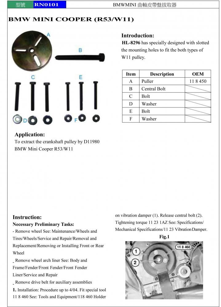 【高品質】BMW MINI用 クランクプーリー プーラー クランクシャフト スラストピン付き 11036